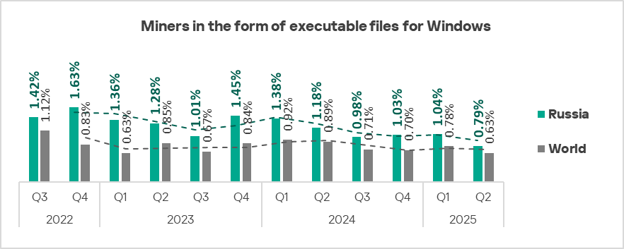 The indicator for miners in the form of executable files for Windows decreased in Q2.