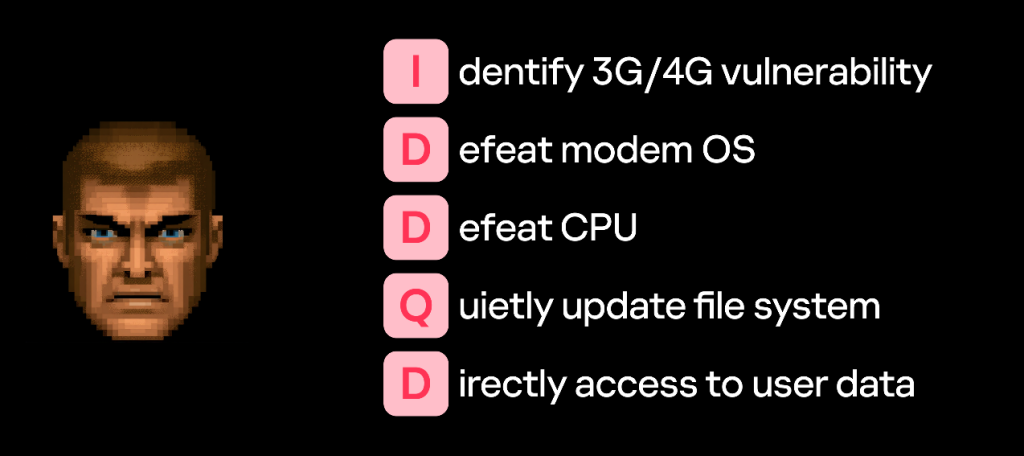 For demonstration (Proof of Concept), we attempted to install and launch the DOOM game on the AP as a payload. The implementation works as follows: the payload component running on the modem sequentially locates the key structures of the Linux kernel, then injects its own code to perform the necessary actions. The entire process must occur without user interaction and bypass Android’s standard security mechanisms.