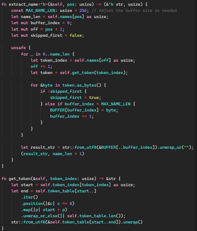 It’s worth noting that the array of symbol addresses may use relative addressing instead of absolute addressing to save memory on 64-bit systems, and the symbol name strings may also be compressed. In our case, both of these mechanisms (relative addressing and symbol name compression) were used, complicating the process of locating the table in kernel memory. Nevertheless, the table was constructed using a heuristic algorithm that “assembles” it from data deemed valid and verifies its integrity after assembly.