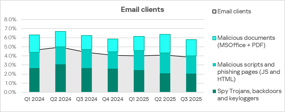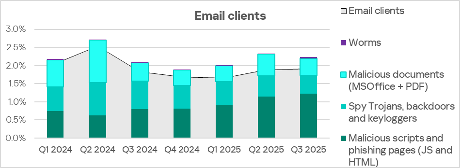 - Third for threats from email clients.