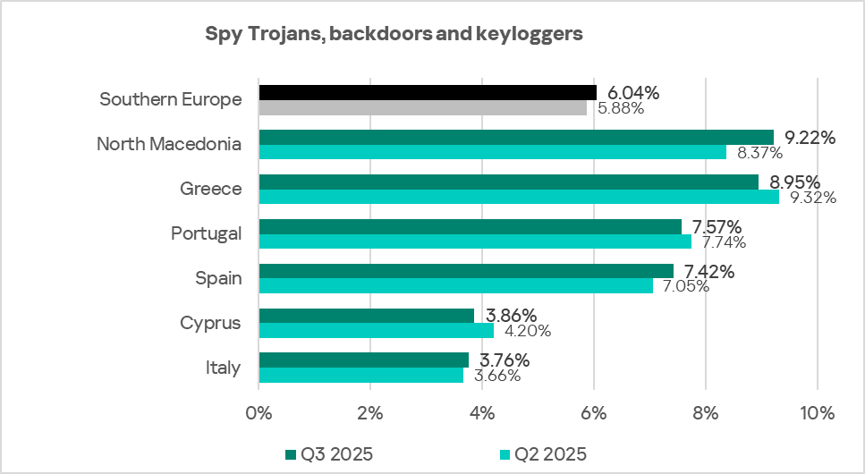 Malicious documents are often used by attackers to deliver targeted malware — including spyware. In the region, the indicator for spyware grew more than anything else over the quarter.