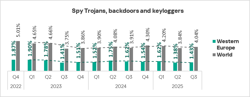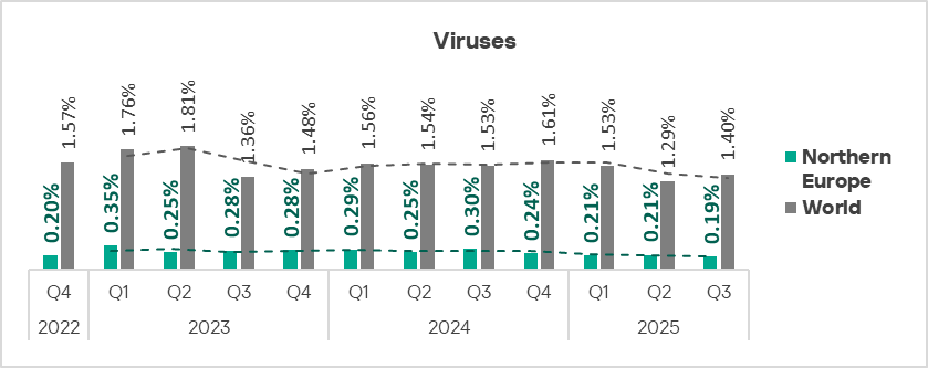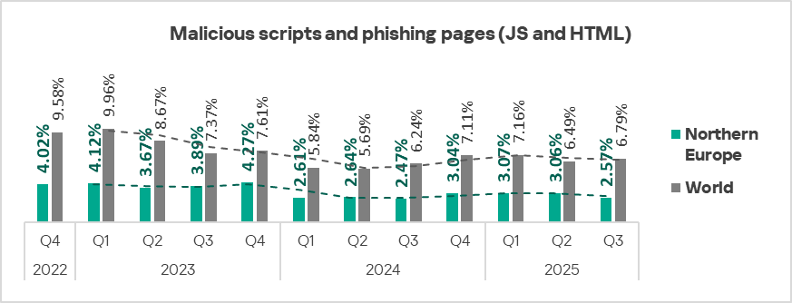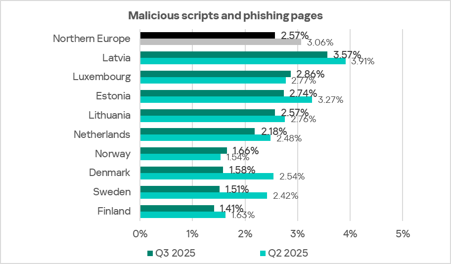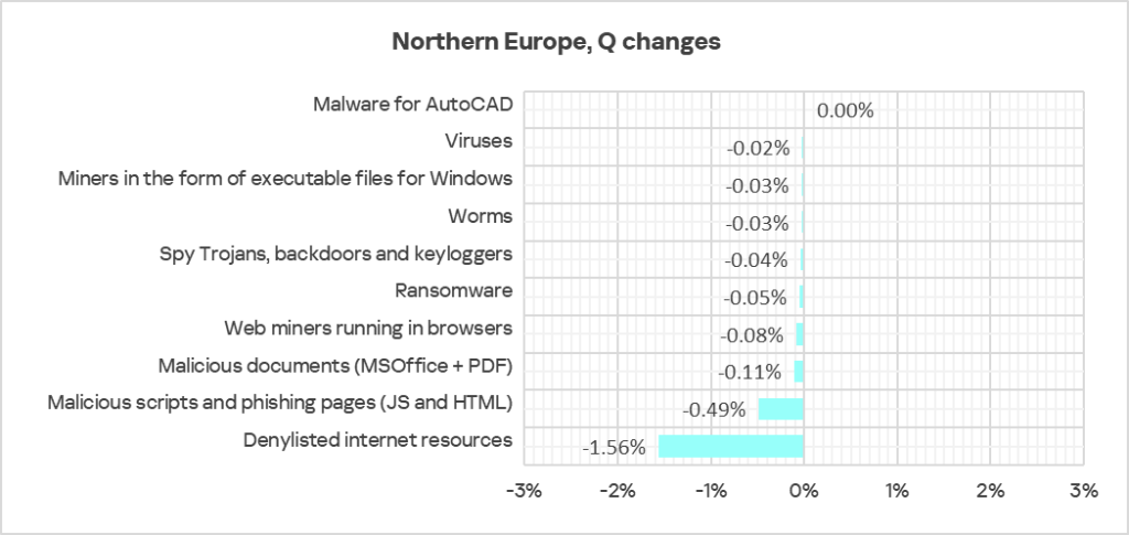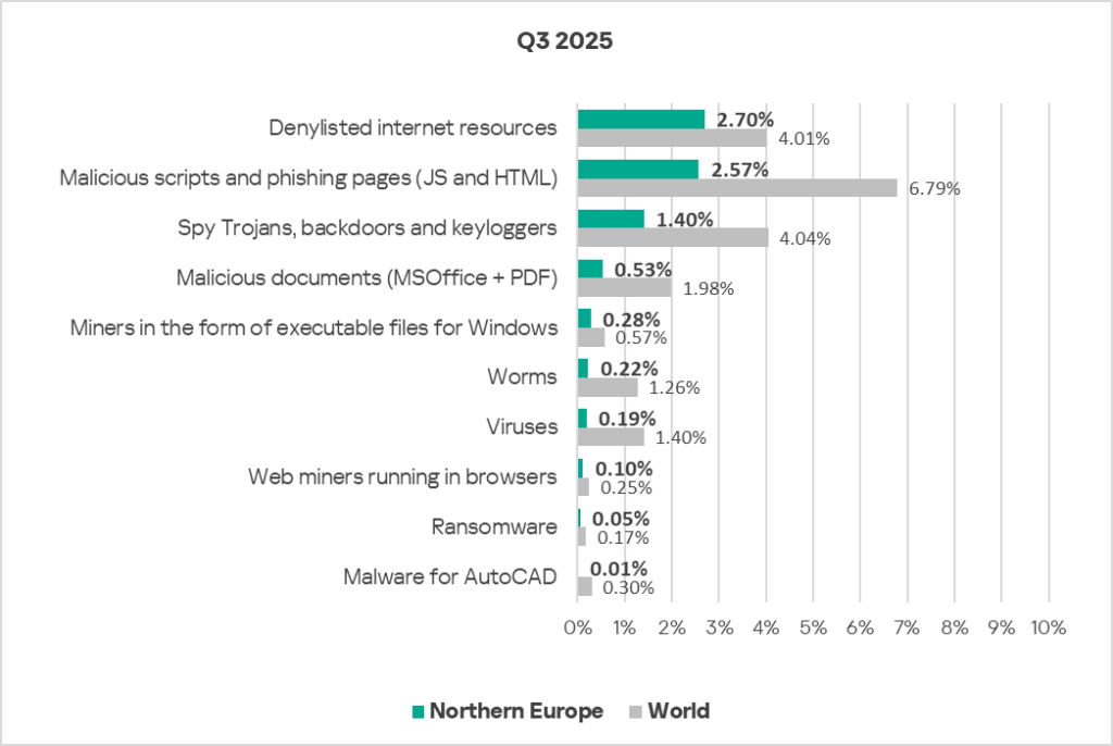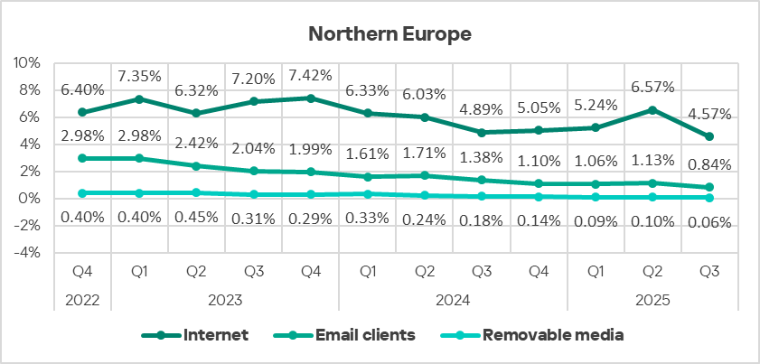 The figures for all threat categories decreased in Northern Europe in Q3 2025.