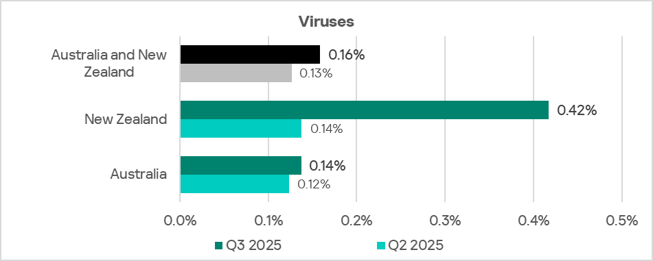 The figures of the region for threats on removable media and in network folders are primarily due to the situation in Australia, as the indicators for these threat sources are negligible in New Zealand.