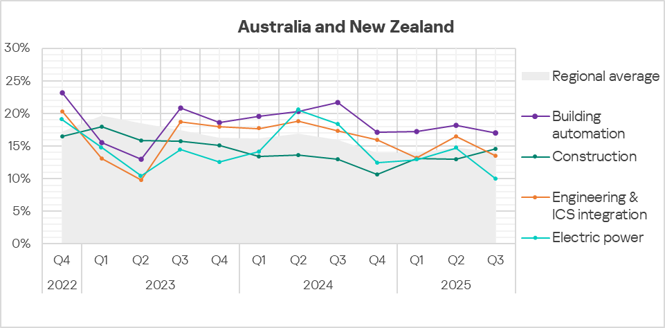 Threat landscape for industrial automation systems. Australia and New Zealand, Q3 2025