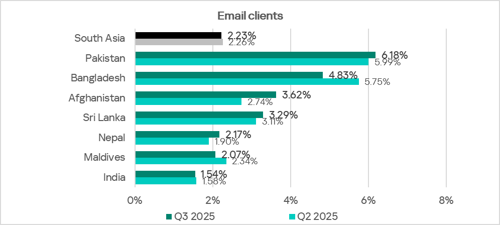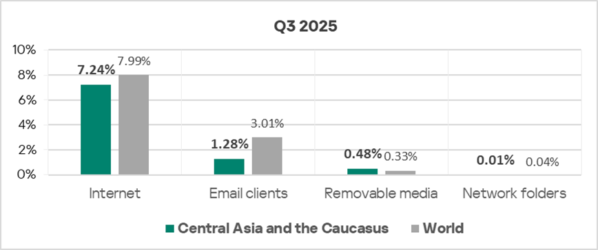 In Q3 2025, this indicator increased for email clients and slightly grew for removable media.