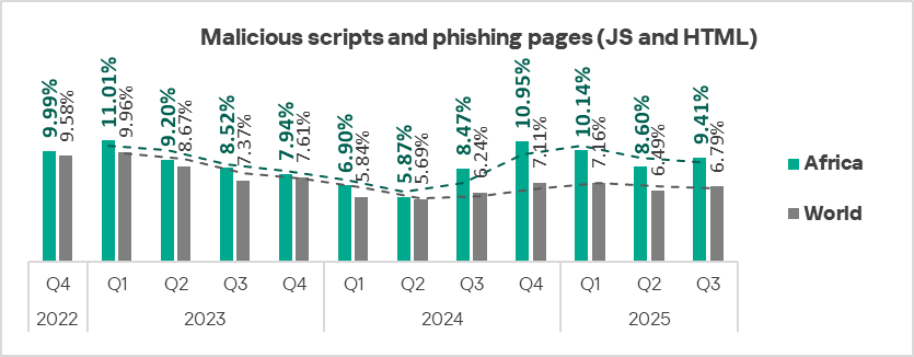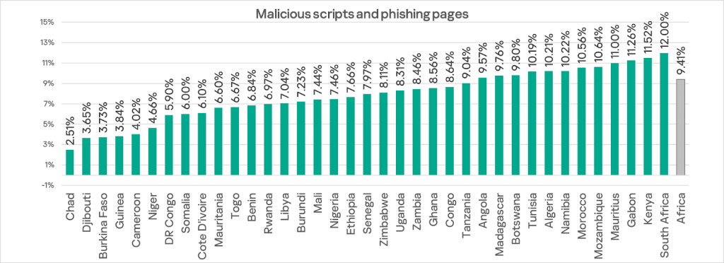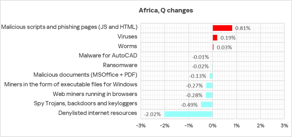 - Malicious scripts and phishing pages (JS and HTML) — Africa jumped up from fourth to first place