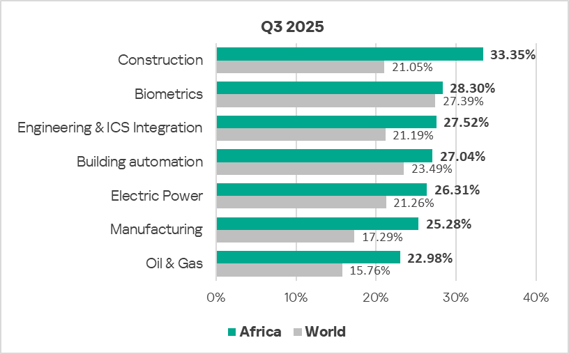 Threat landscape for industrial automation systems. Africa, Q3 2025