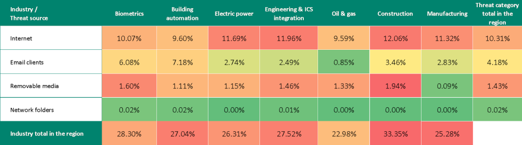 - First in ICS computers blocking threats when connecting to removable media, and second in internet threats.