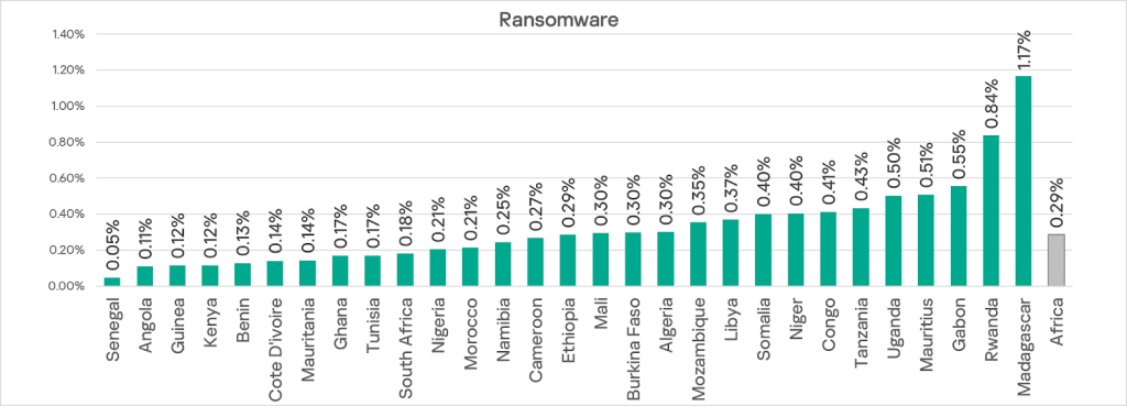 Among the countries of the region, Madagascar (1.17%) and Rwanda (0.84%) recorded the highest percentages of ICS computers where ransomware was blocked.