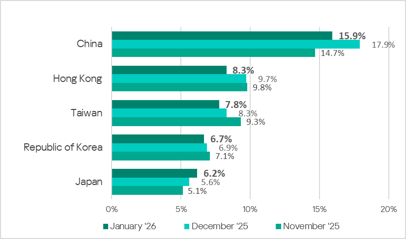 According to this indicator, we can see that both Japan and Taiwan could be ranked among the territories that are safe in terms of cybersecurity. However, cyberincident statistics suggest otherwise. Clearly, protection measures against the most common threats, whose quality can be indirectly assessed from the above diagram, may not be sufficient to protect against targeted attacks – the main cause of most cyberincidents. The situation regarding Taiwan probably reflects aspects of the geopolitical landscape – the territory is located in a geopolitical fault zone – and a large number of targeted attacks and incidents seems inevitable. In our opinion, one reason for the high number of cyberincidents in Japan is that Japanese enterprises rely too heavily on the ‘conscientiousness’ of their employees. They assume that employees will not engage in any behavior that could compromise cybersecurity, such as using work computers for personal purposes, connecting flash drives unnecessarily, visiting suspicious websites or opening phishing emails. As a result, they only implement automated cybersecurity tools to a limited extent in enterprises.