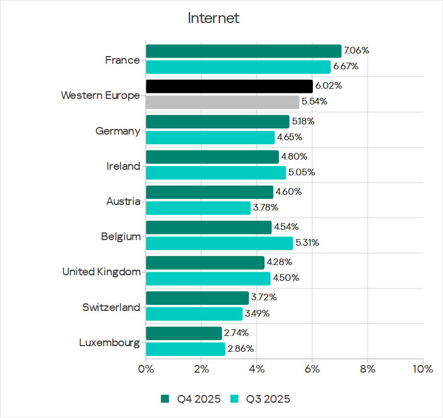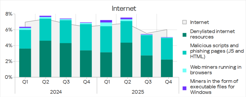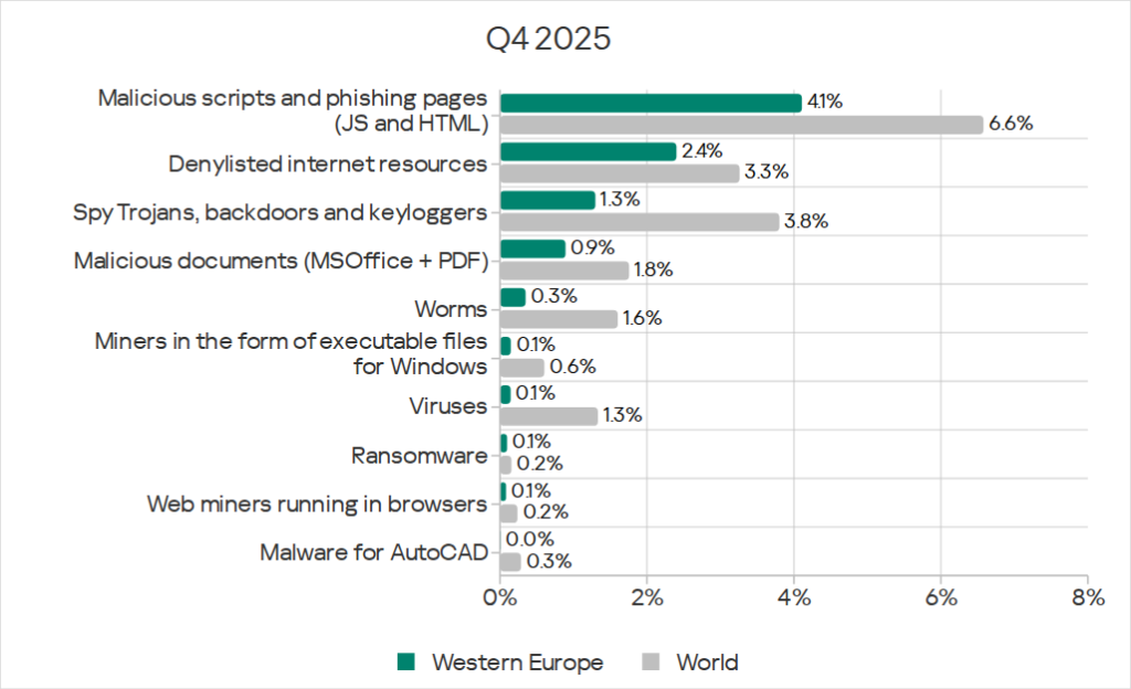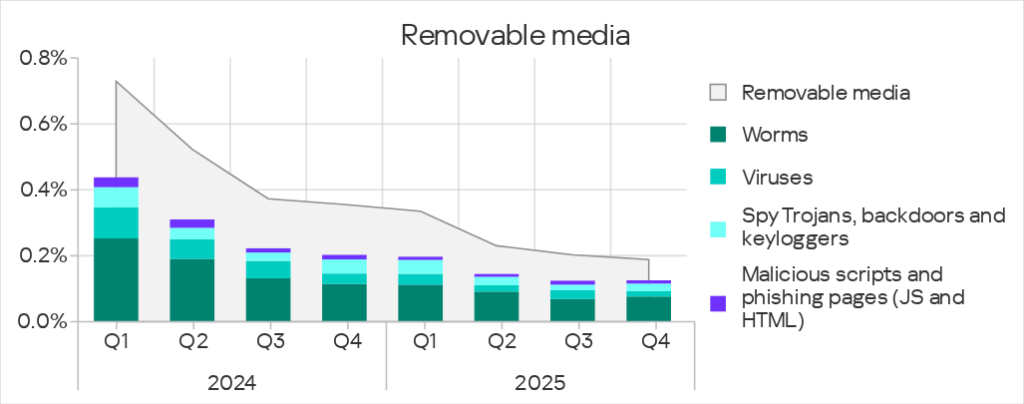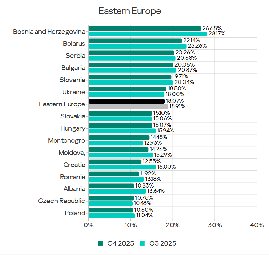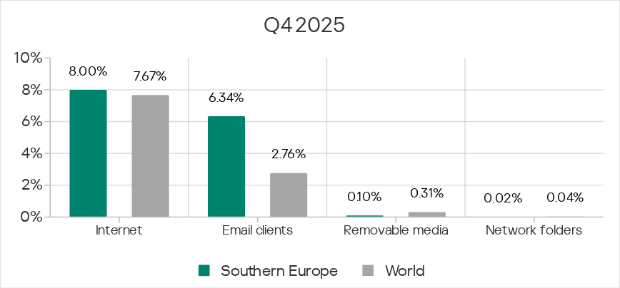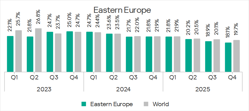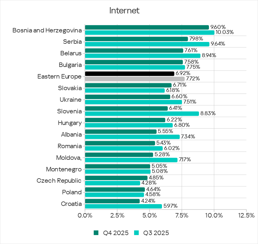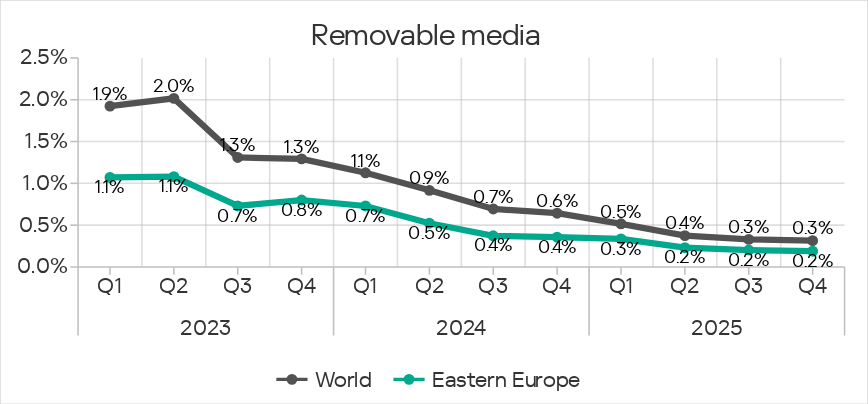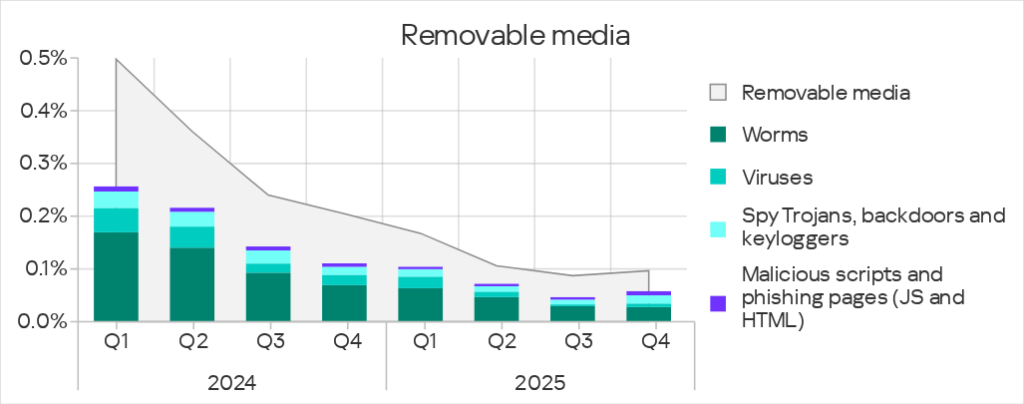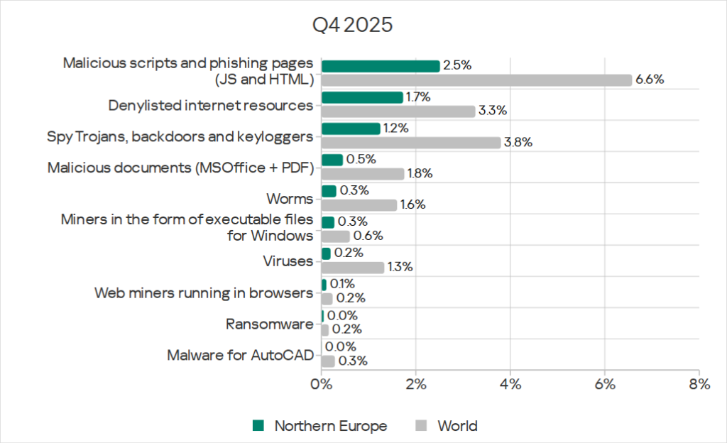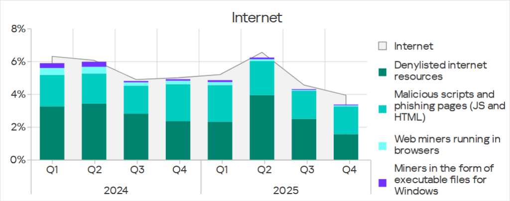 In Q4 2025, the region saw the figures for internet threats and removable drive threats increase.