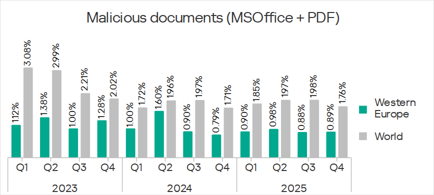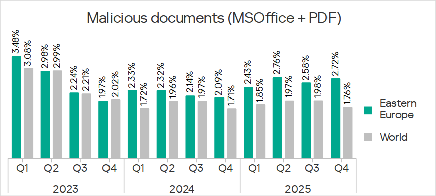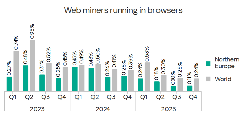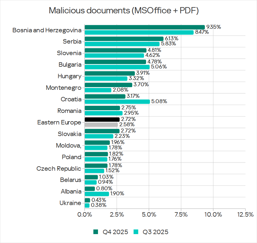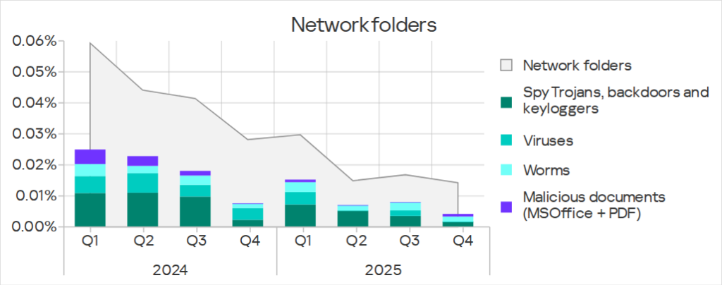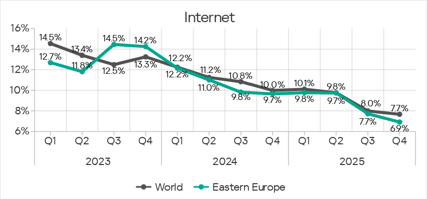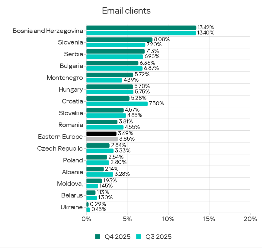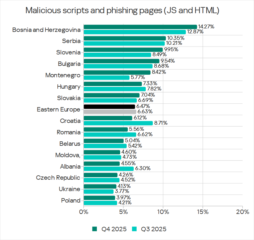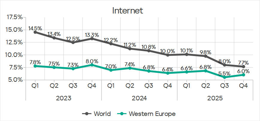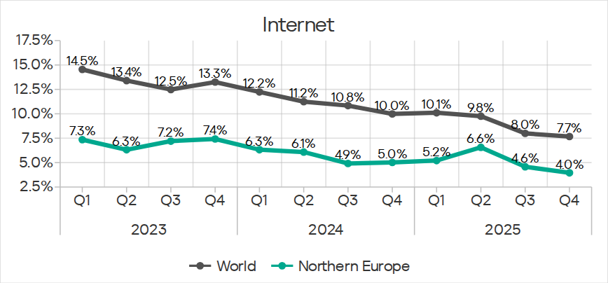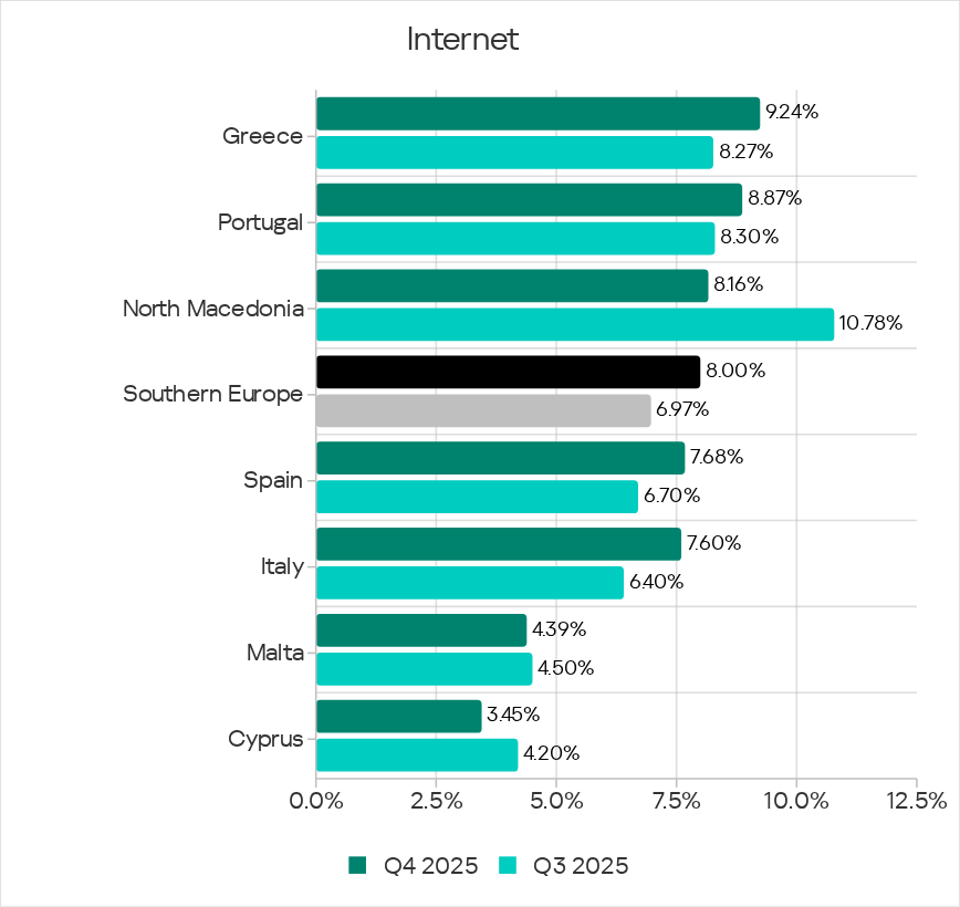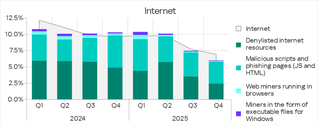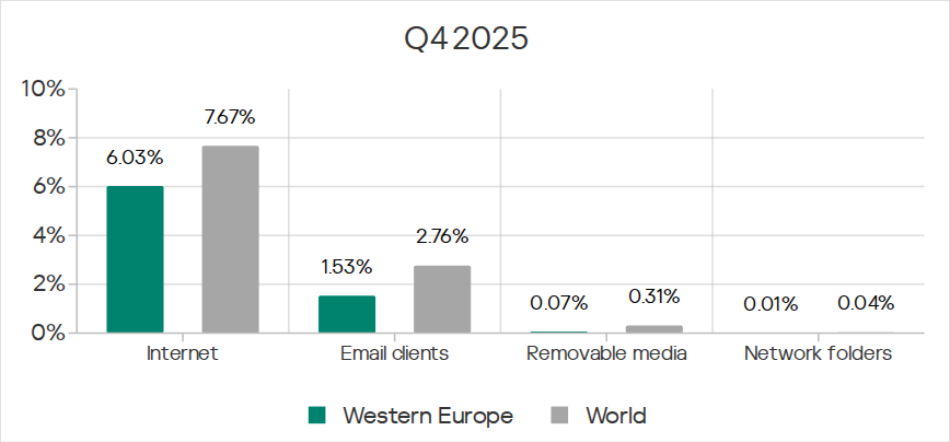 In Q4 2025, the region saw the figures for internet threats and removable drive threats increase.