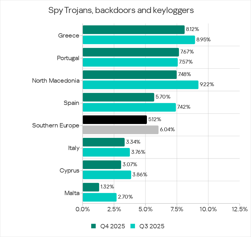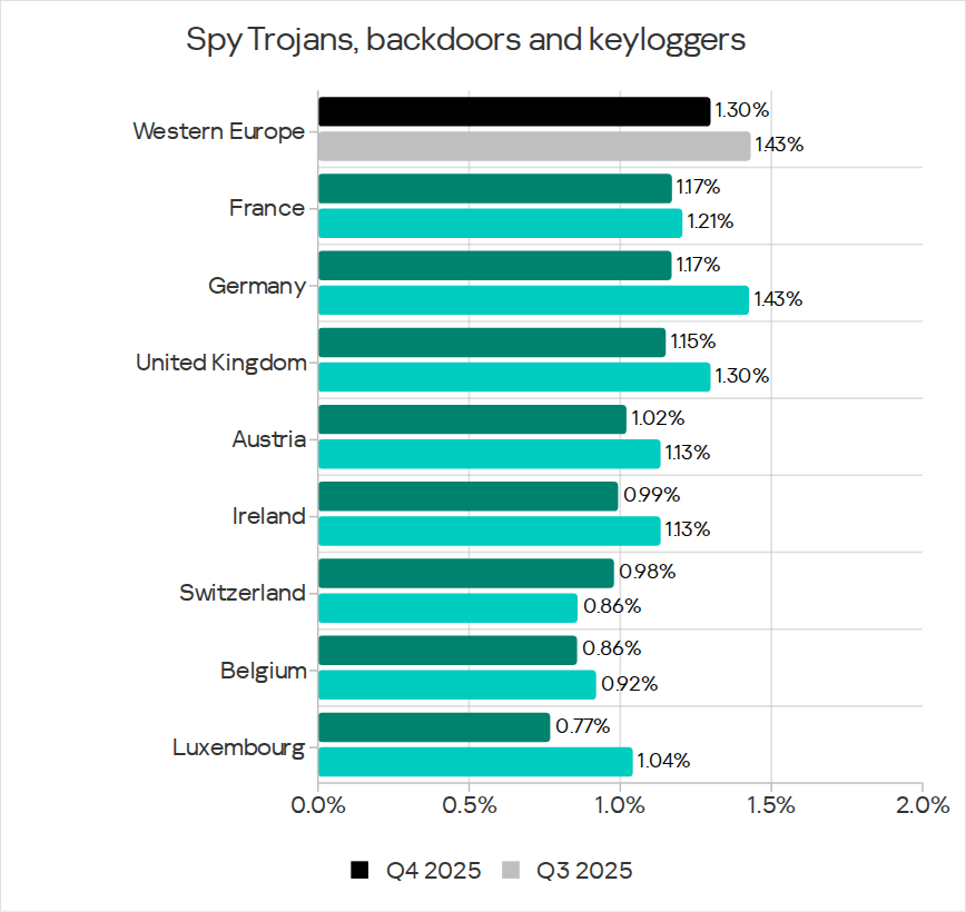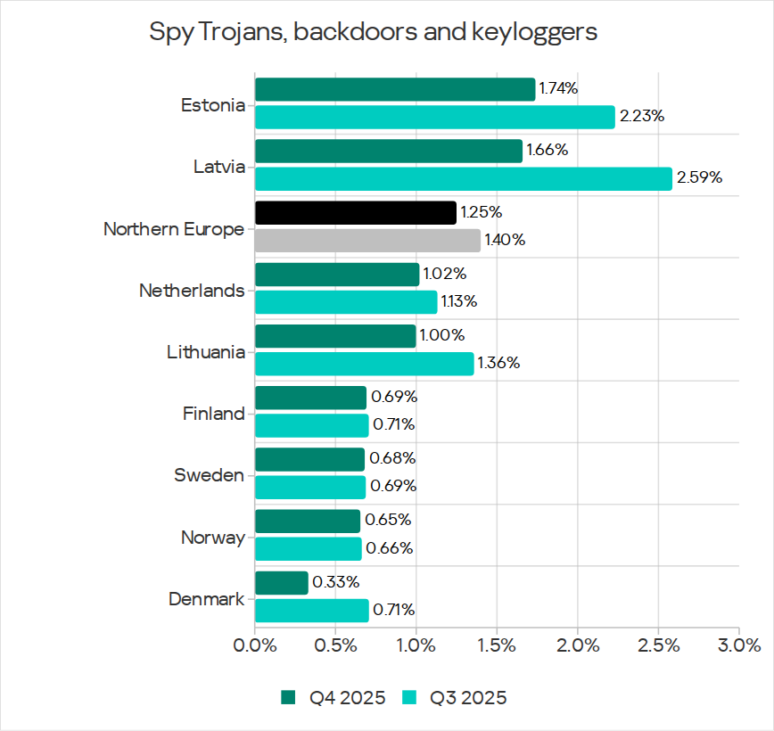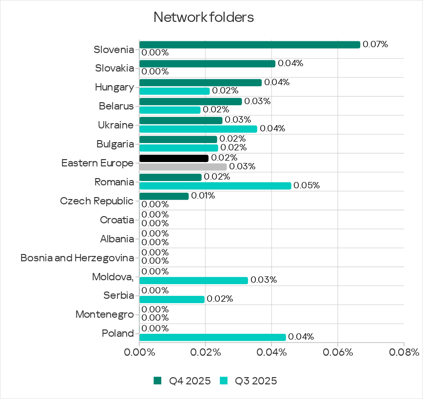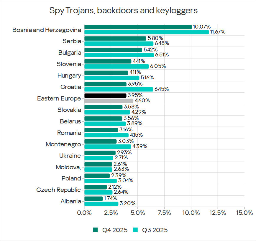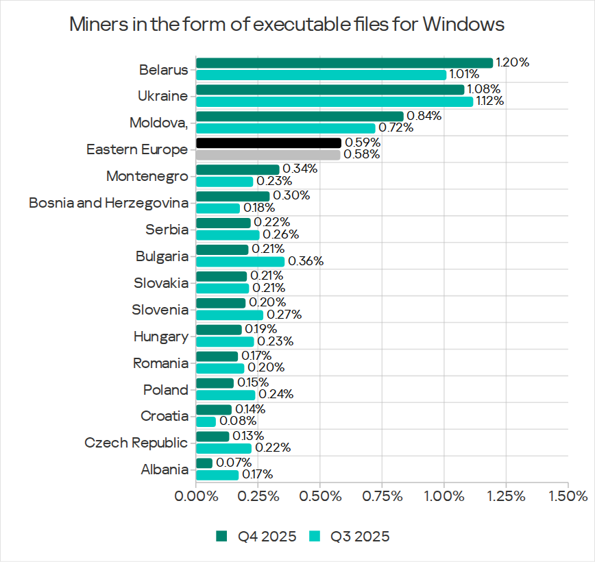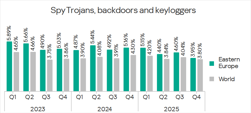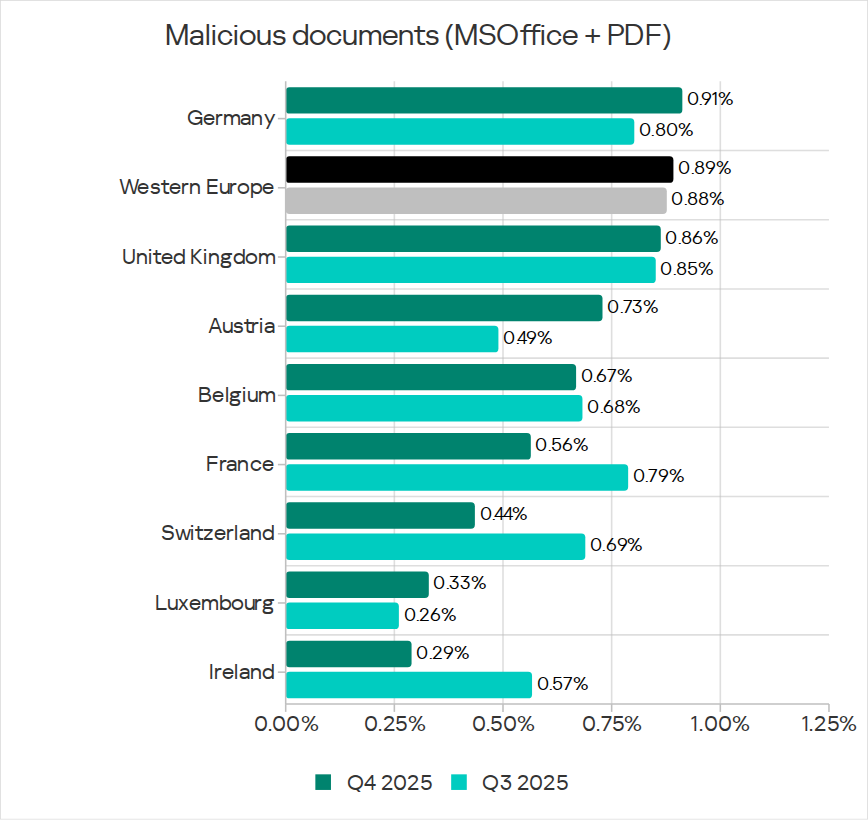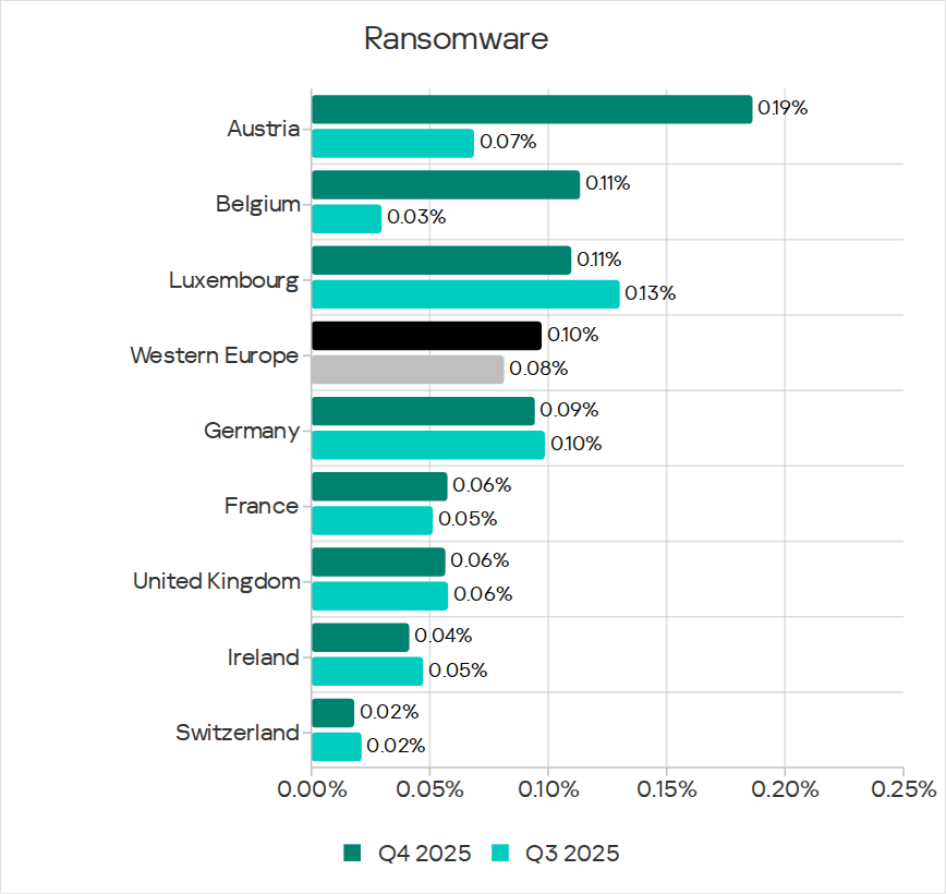 In Q4 2025, the region saw the figures for internet threats and removable drive threats increase.