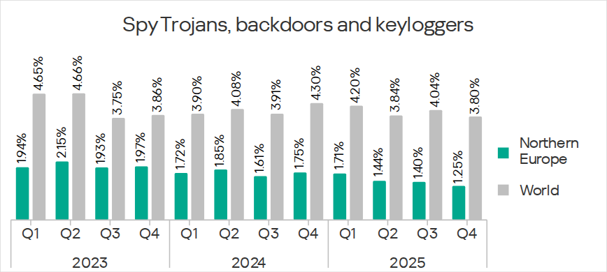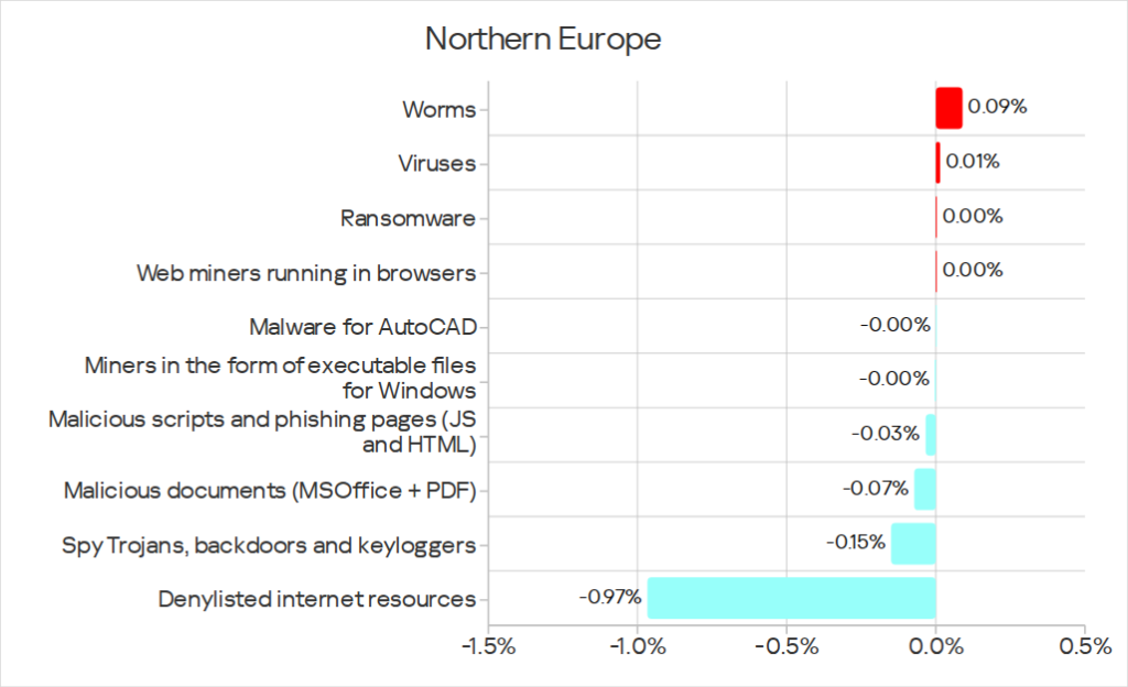 For all threat categories, Northern Europe’s figures remained below global averages.
