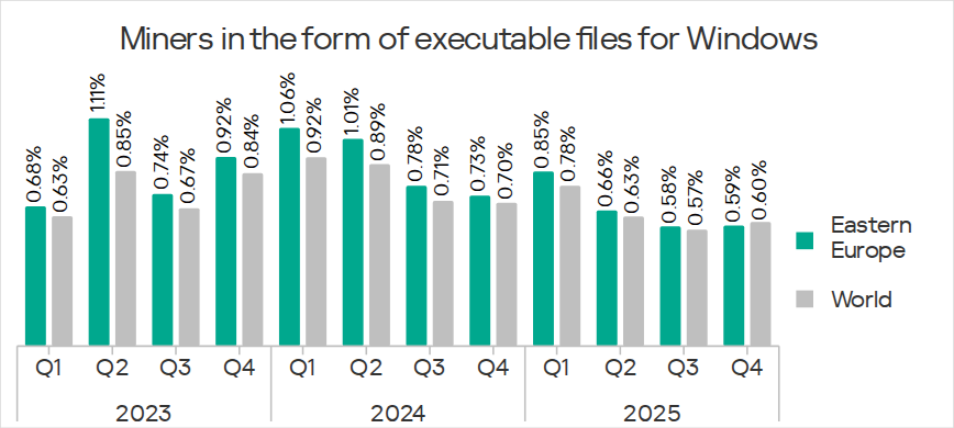 In Q4 2025, the figure for miners in the form of executable files increased in three of the surveyed industries: construction, engineering and ICS integrators, and building automation.