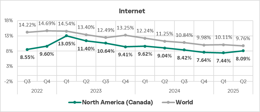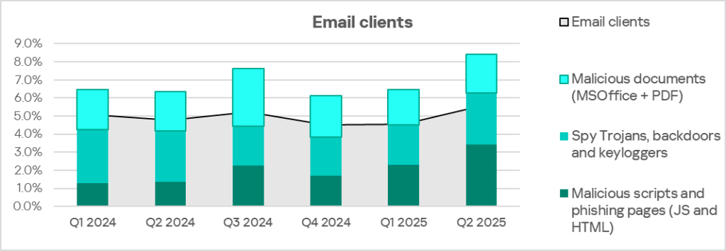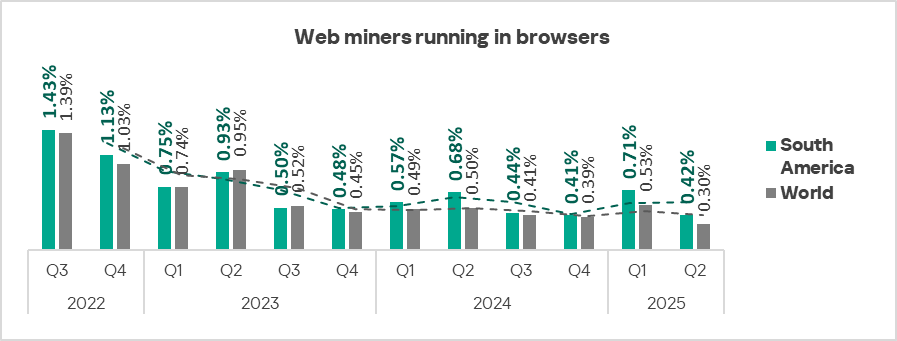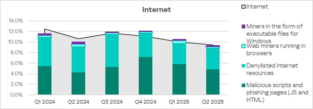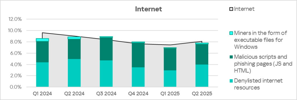 In Q2 2025, the percentage of internet threats in the region increased, against the backdrop of a decreasing global average, marking the end of a decline that had lasted for the previous four quarters.