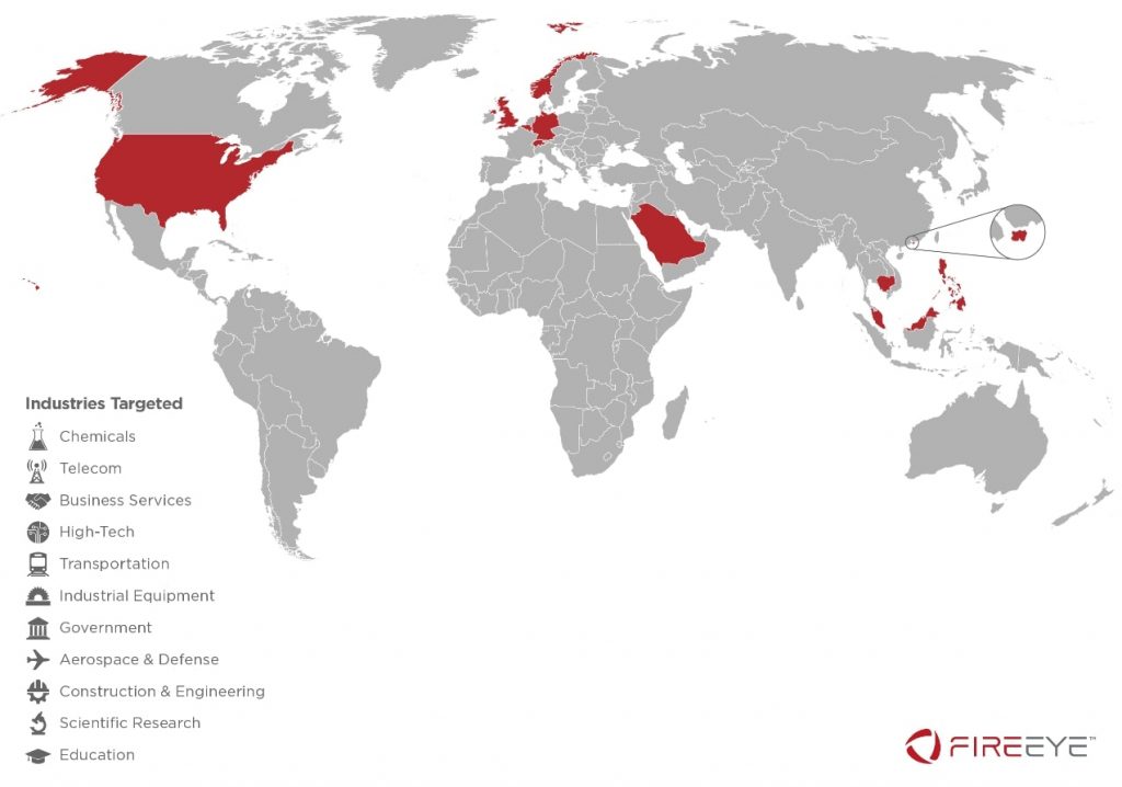 In August 2019, FireEye reported on the activity of a Chinese group that has been operating since 2012 and is involved in strategic espionage in areas related to China’s five-year economic development plan. Attacked organizations are in healthcare, semiconductor manufacturing, advanced computer software, battery and electric car manufacturing, and other industries. These organizations are located in 14 countries, including France, India, Italy, Japan, South Korea, the UK, and the US.