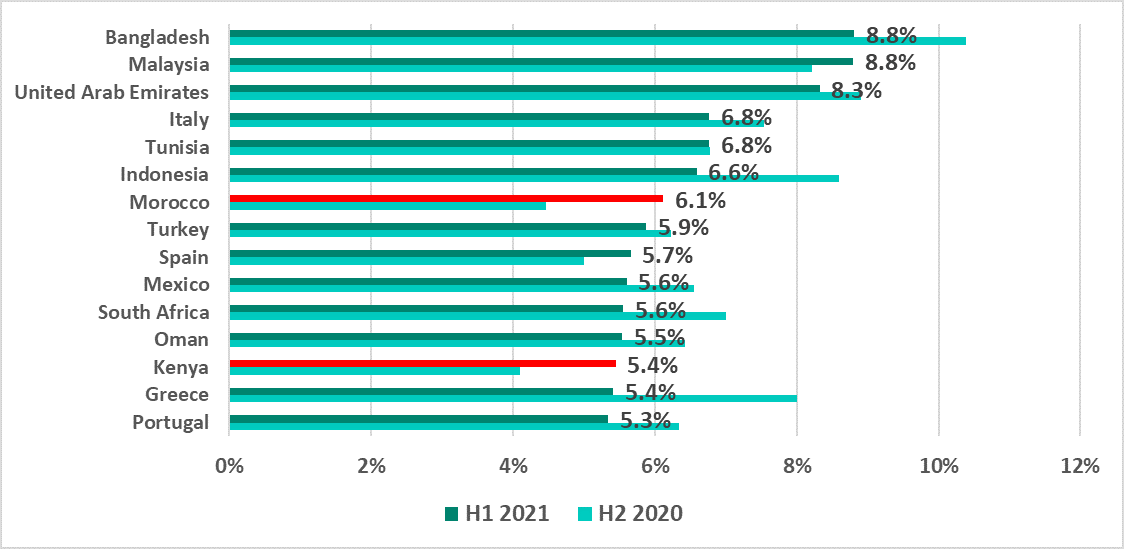 The most significant increases in this indicator, by 1.7 and 1.3 p.p. respectively, were recorded in Morocco and Kenya.
